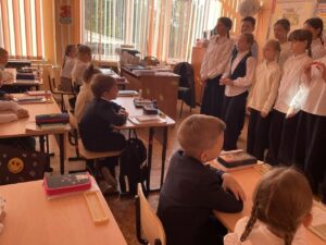 Ребята 4А класса (кл. руководитель Калемалькина Т. С.) в единый день безопасности дорожного движения провели акцию «Расскажи о ПДД первокласснику».