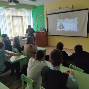 18.09.25 в гости к 7в классу пришла библиотекарь 16 филиала Федорова Екатерина Вячеславовна.