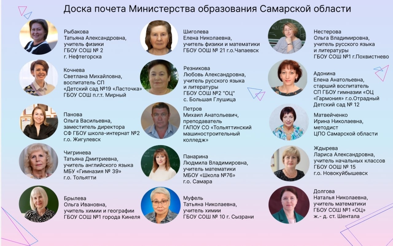 Поздравляем номинированных на Доску почета министерства образования Самарской области педагогов и наставников региона!