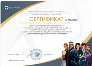 Для обучающихся это уникальная возможность повысить свою финансовую грамотность. Дети приняли активное участие в онлайн — уроках по темам: цифровой рубль, денежные реформы, история денег.