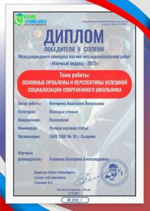 работ «Научный подход — 2025» по направлению «Психология» в номинации «Лучшая научная статья».